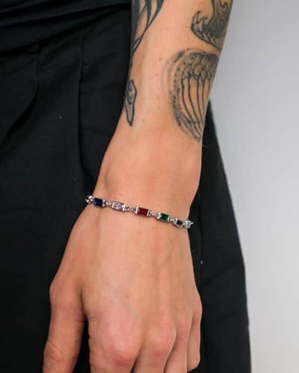 éclat et sophistication sont au rendez-vous avec ce bracelet multicolore en pierre précieuse. Conçu pour sublimer votre style, que ce soit pour une occasion spéciale ou un look streetwear chic au quotidien, ce bijou promet de ne pas passer inaperçu. Entre luxueux et audacieux, il incarne la fusion parfaite entre l’élégance intemporelle et le design moderne.